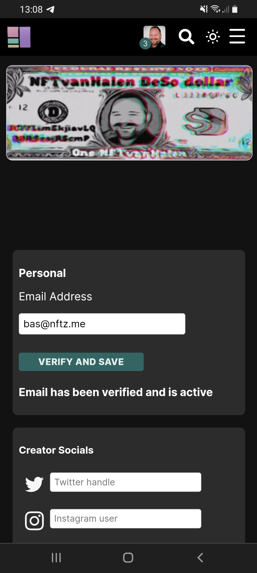 At the top you can enter your email adress and press 'Verify and Save'.