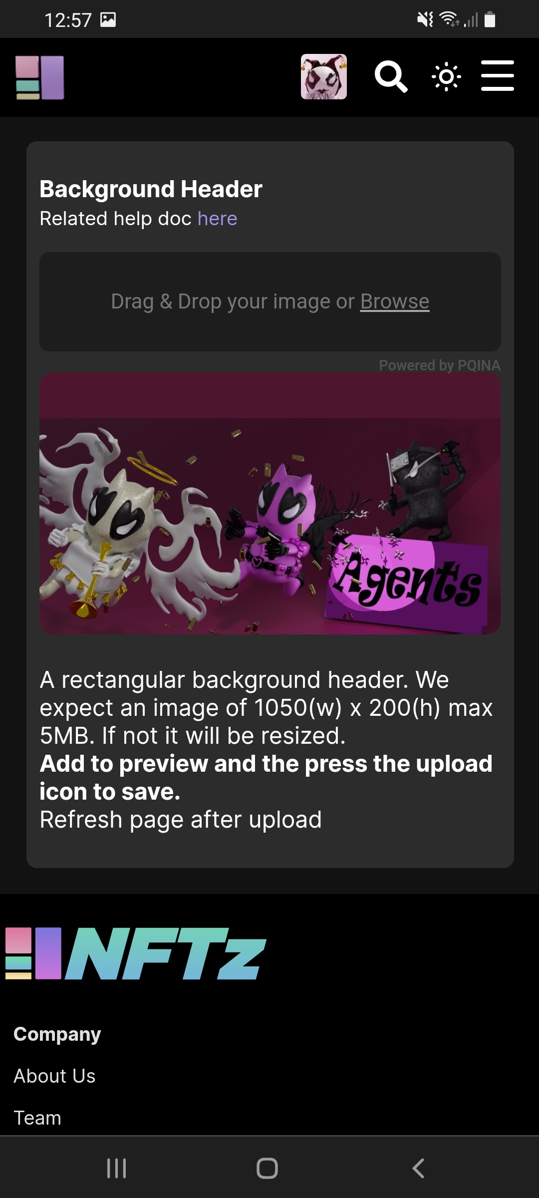 Drag your image (jpg/png) to Background Header.