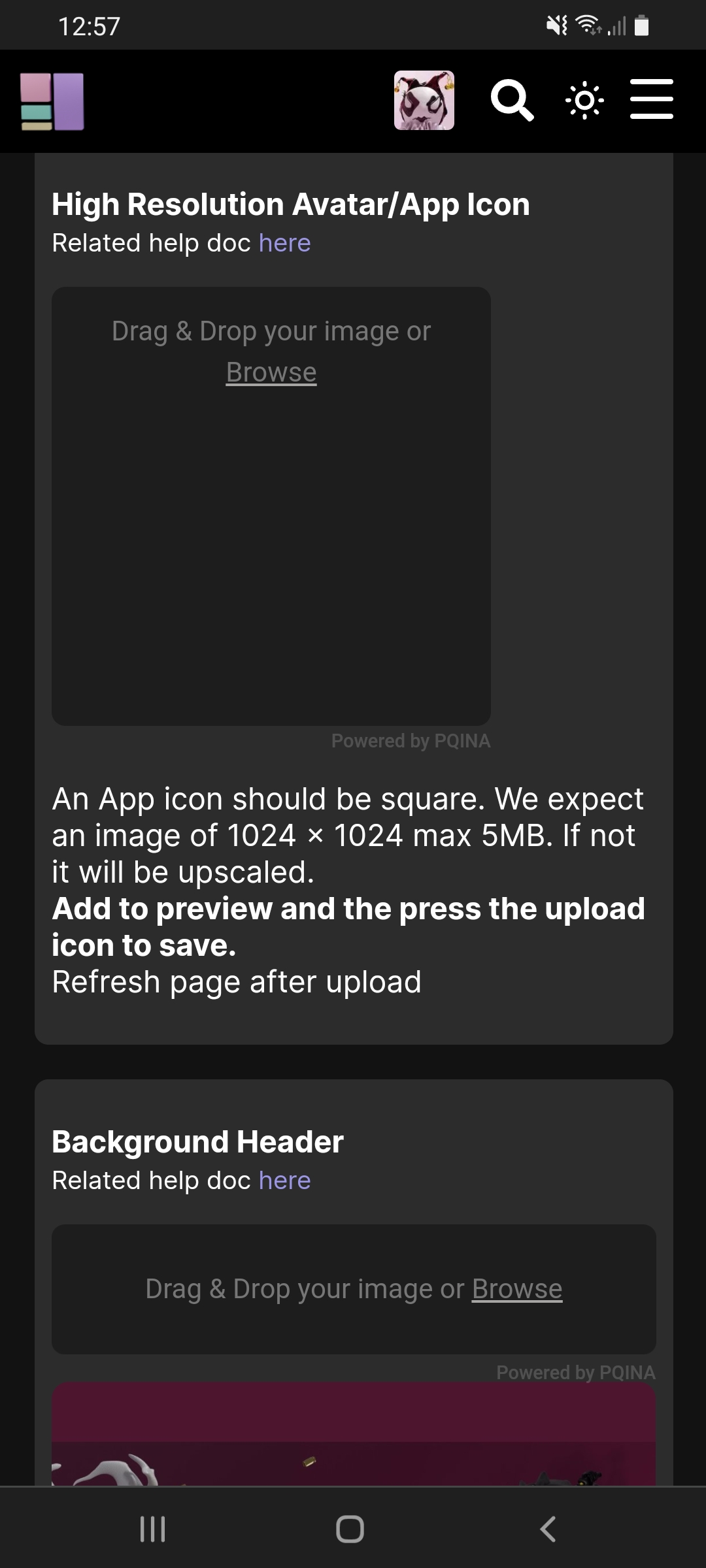 Drag & Drop' your image or choose Browse'. (preferable an 1024x1024 image)
